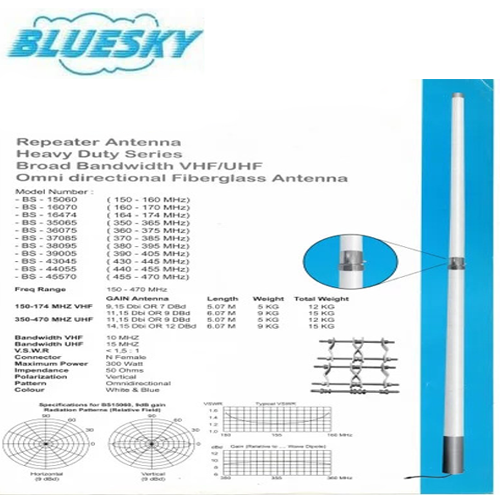 Antena Repeater Bluesky BS-15060 adalah antena vertikal omnidireksional. Artinya, antena ini dapat memancarkan sinyal dalam semua arah secara merata. Hal ini sangat berguna untuk keperluan komunikasi yang membutuhkan cakupan area yang luas, seperti di wilayah perkotaan atau di daerah yang sulit dijangkau.